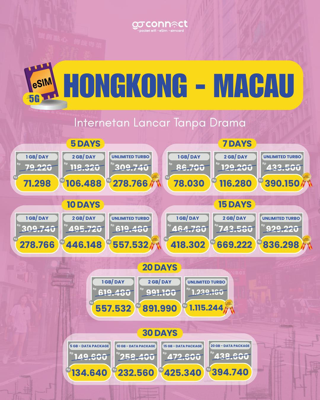 1GB/DAY 5 hari, 2GB/DAY 5 hari, Unlimited Turbo 5 Hari, 1GB/DAY 7 Hari, 2GB/DAY 7 Hari, Unlimited Turbo 7 Hari, 1GB/DAY 10 hari, 2GB/DAY 10 hari, Unlimited Turbo 10 hari, 1GB/DAY 15 Hari, 2GB/DAY 15 Hari, Unlimited Turbo 15 Hari, 1GB/DAY 20 Hari, 2GB/DAY 20 Hari, Unlimited Turbo 20 Hari, 5GB 30 Hari, 10GB 30 Hari, 15GB 30 hari, 20GB 30 Hari