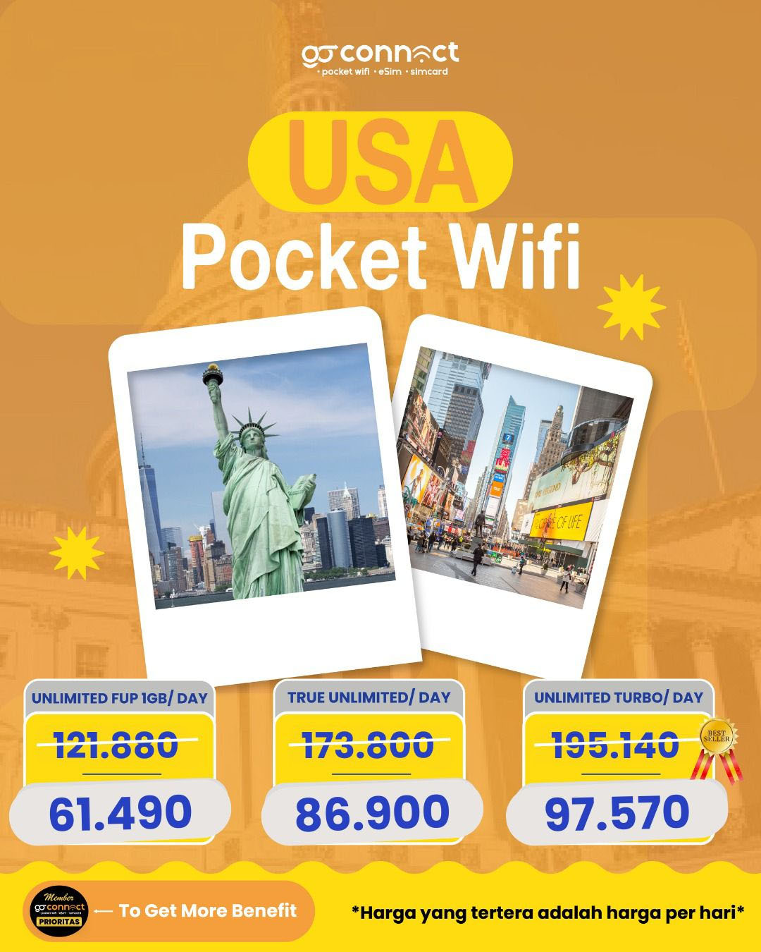 | Paket Pocket WiFi | UNLIMITED FUP 1GB/DAY, TRUE UNLIMITED/DAY, UNLIMITED TURBO/DAY |